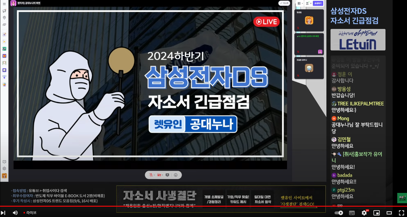 12년차 삼성전자 현직자분이 설명해주시는게 도움이 많이 되었다고 생각합니다.