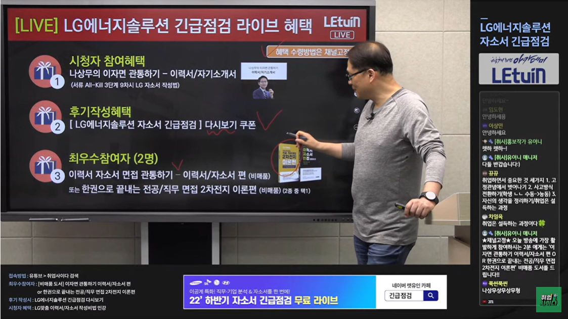 ※ 본 게시글은 2022.09.05 진행된 안재형 선생님의 2022년 하반기 대비 LG에너지솔루션 자소서 긴급점검 특강에 대하여 렛유인 카페에 남겨주신 생방송 특강 시청 후기입니다.
