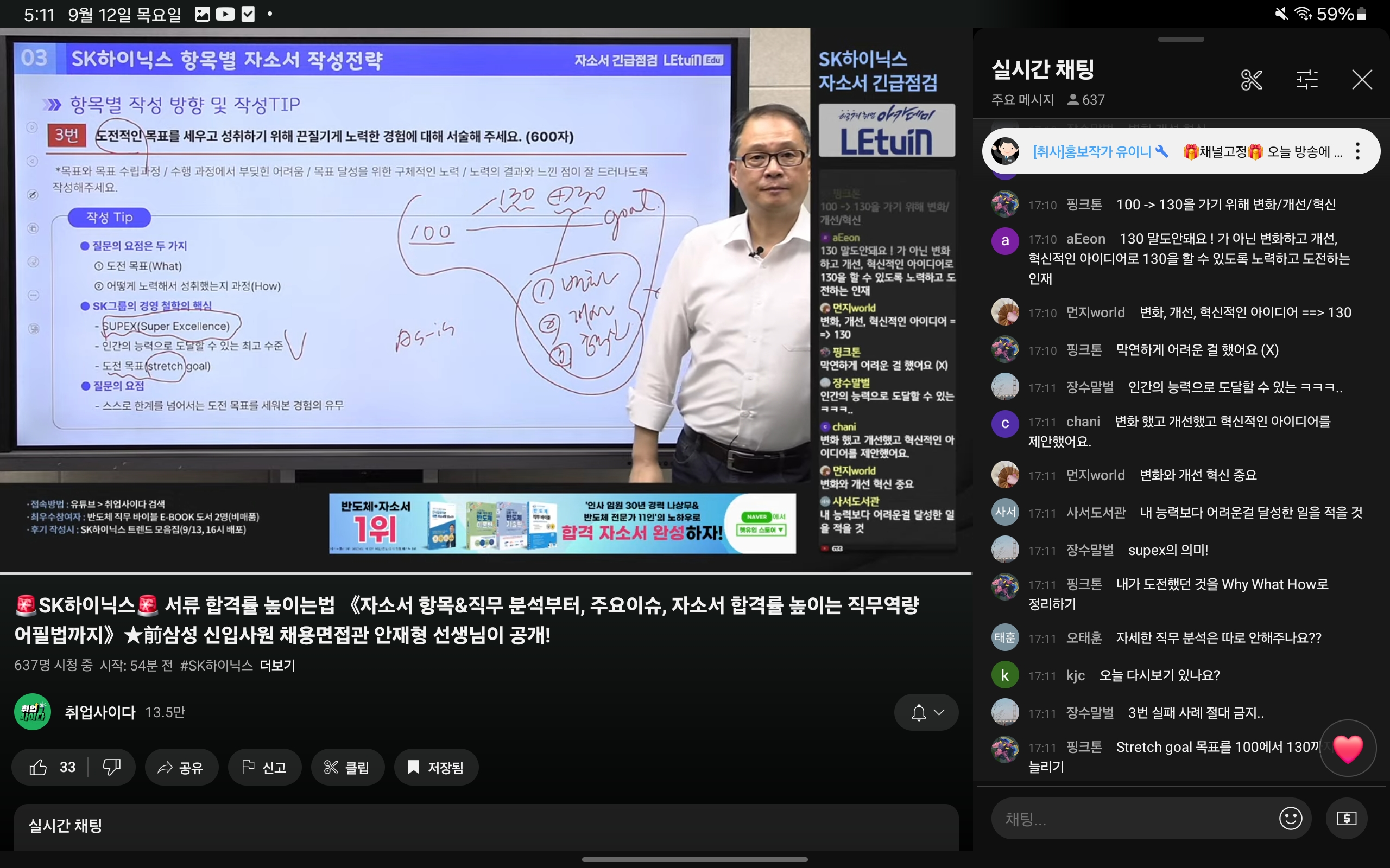 짧은 시간안에 강의를 해주셨는데 가장 중요한 내용들을 압축하여 잘 전달해 주신 것 같아 쉽게 이해할 수 있었던 것 같습니다. 또한 하이닉스가 중점적으로 보는 내용들과 회사 상관없이 자소서를 쓸 때에 지켜야 할 것들도 예를 들어 설명해주셔서 추후 자소서를 쓸 때에 적용하기 쉬울 것 같습니다.