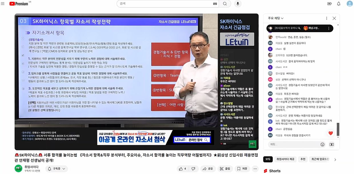 최신 SK하이닉스의 이슈와 채용직무에 대해서도 직무 방향을 적는데 도움이 많이 되었습니다! 감사합니다. 생방송 시청 인증 이미지