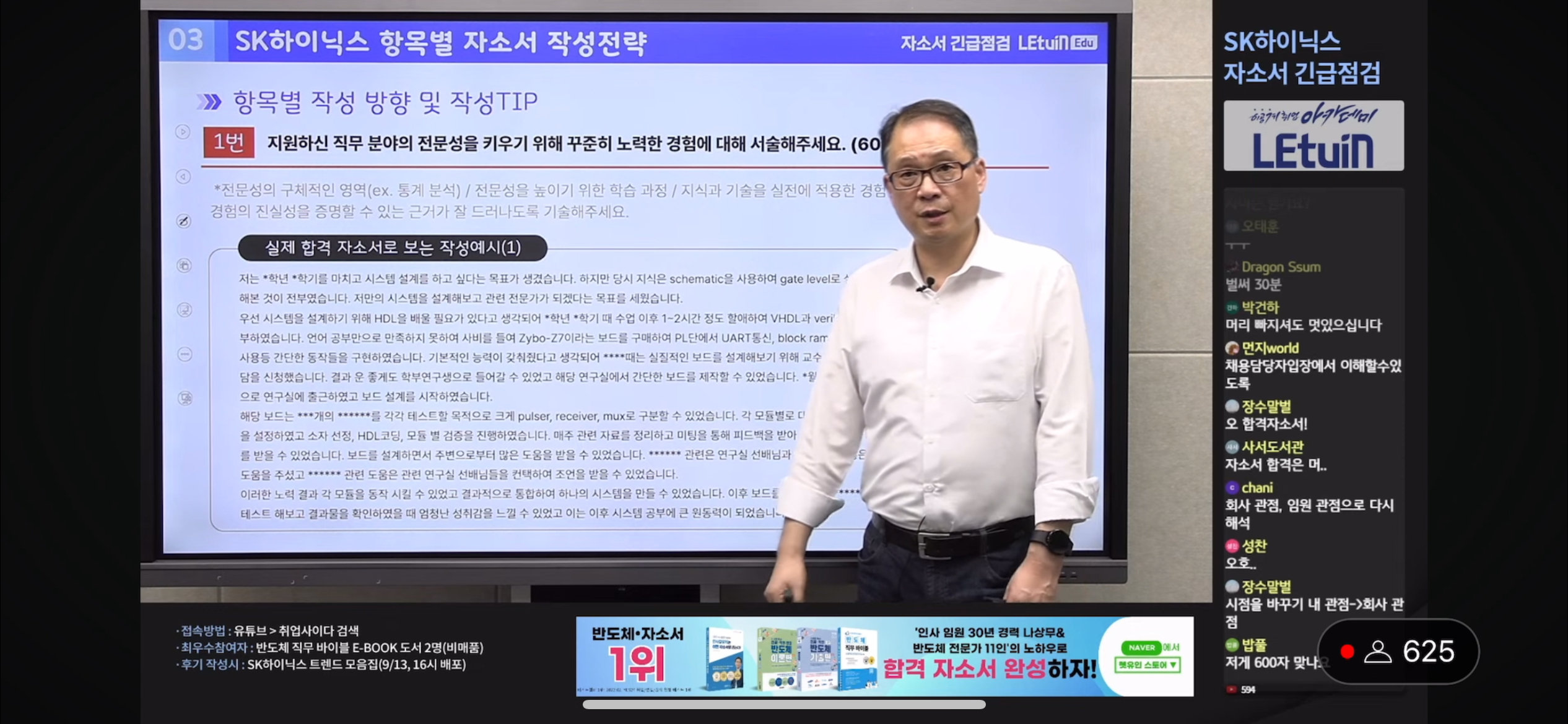그간 자소서를 작성하며 실패했던 이유들을 예시를 통해 알 수 있었다. 하이닉스뿐만 아니라 앞으로 자소서 작성에 있어서 활용할 수 있는 점들을 배웠다. 실행이 중요! 생방송 시청 인증 이미지