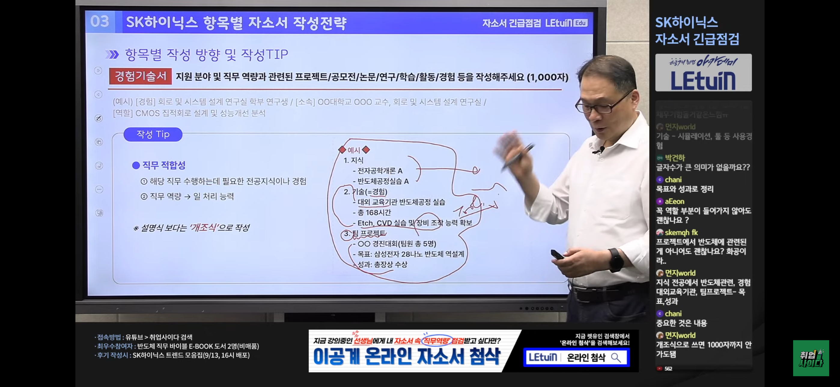 2024 하반기 SK하이닉스 채용 직무 및 특이점, SK하이닉스 핫 이슈, 각 항목별 자소서 작성전략 방향과 작성 예시, Tip 및 유의사항에 대해 상세한 설명을 들을 수 있었습니다.