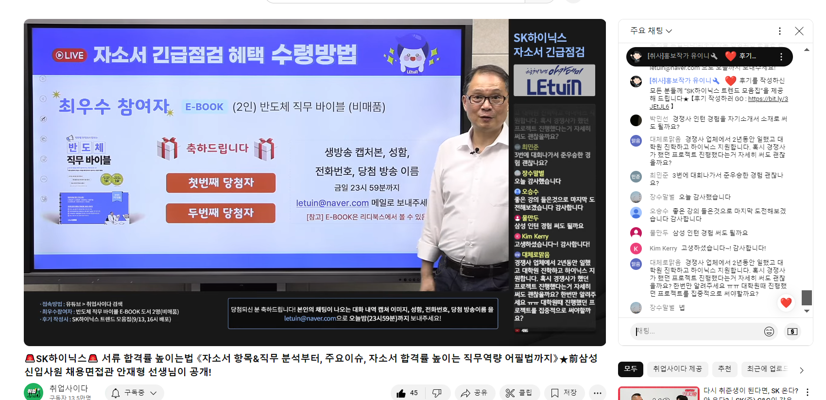 지난 채용들과 비교하여 달라진 점들을 정리해주신 것도 많은 도움이 되었습니다. 현직자 출신 입장에서 해주신 현실적인 조언(?)들이 많은 도움이 될 것 같습니다. 생방송 시청 인증 이미지
