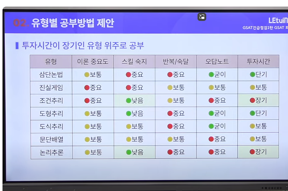 추리 문제에 어떻게 접근하여야 하는지 자세히 알려주셨습니다. 문제 푸는 속도 뿐만 아니라 순서도 증요하다. 3. 수강후기