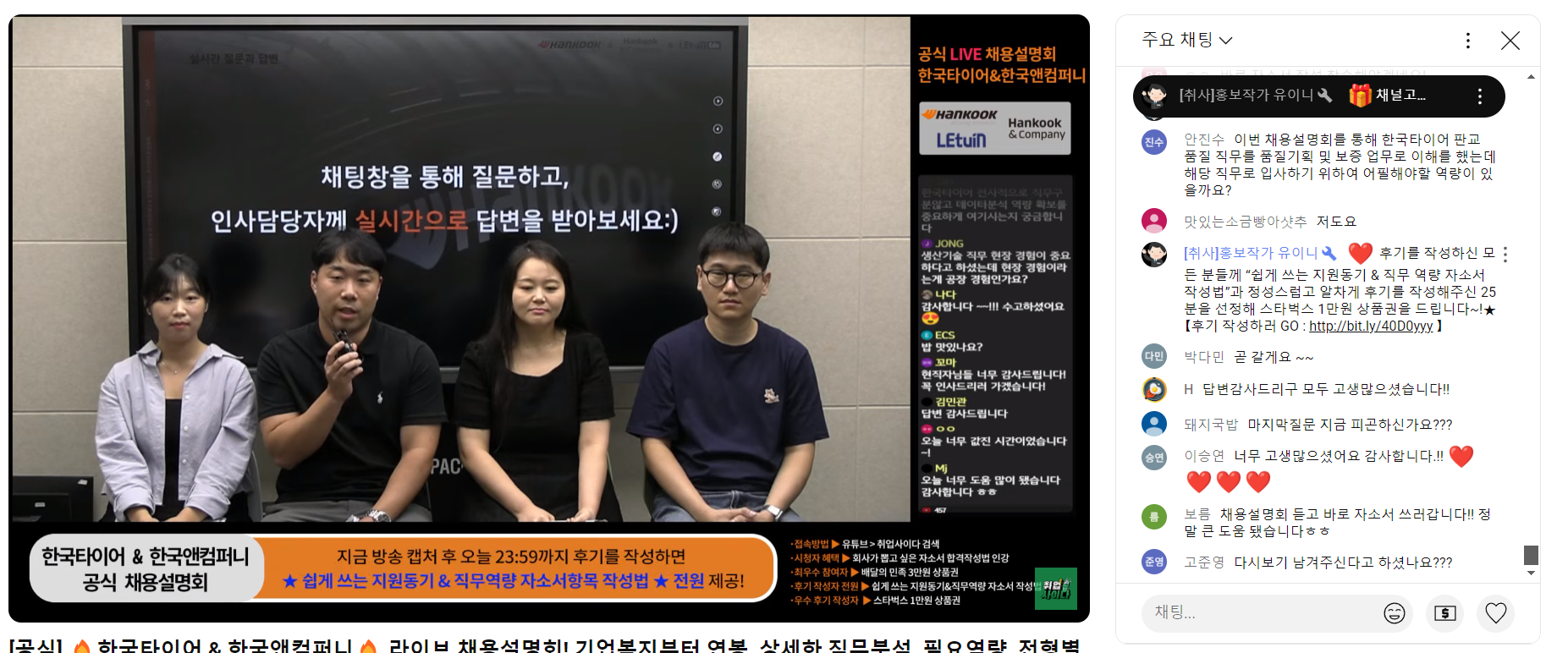채용설명회가 아니라 정녕 강의를 듣는 것이 아니었나.. 타이어 반제품(프로파일과 스트럭쳐) 아주 잘 활용해서 자기소개서 작성하겠습니다. 생방송 시청 인증 이미지