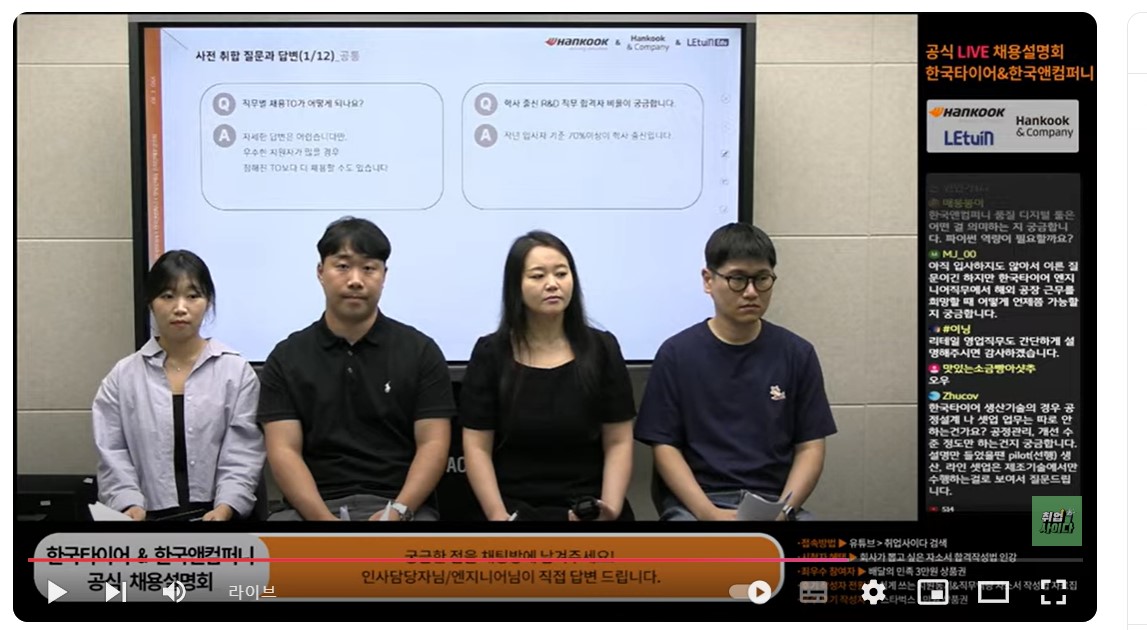한국타이어 & 한국앤컴퍼니 라이브 채용설명회 참석!