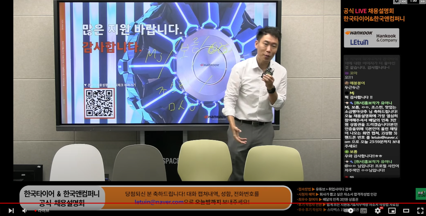 각 직무 별 상세 업무와 한국 타이어와 한국 앤 컴퍼니의 향후 기술 개발 트랜드을 확인, 복지도 알 수 있었고, 현직자들과의 Q&A를 통해 궁금했던 내용들을 확인할 수 있었습니다.