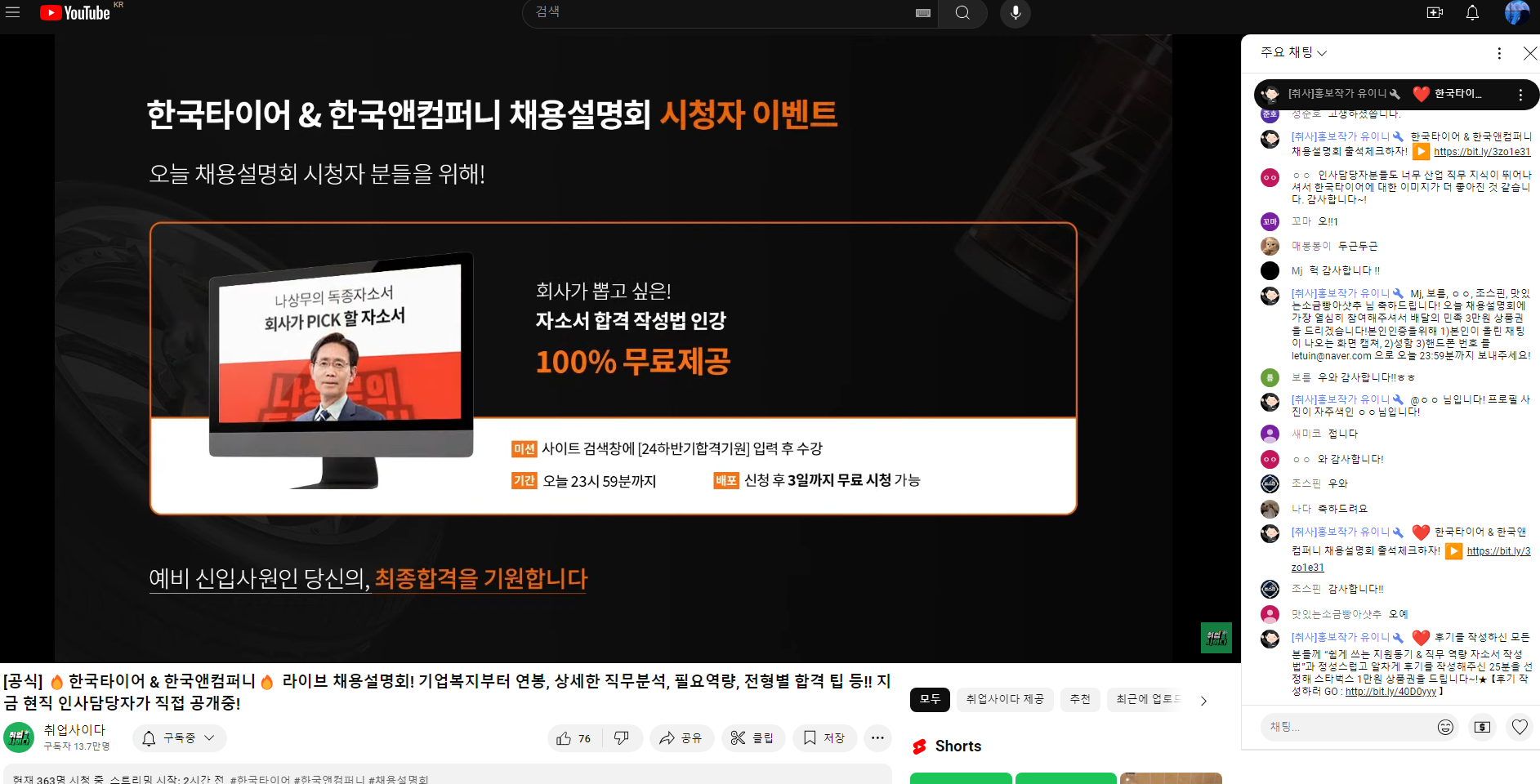 한국앤컴퍼니 사업 방향도 알 수 있어서 좋았습니다. 생방송 시청 인증 이미지