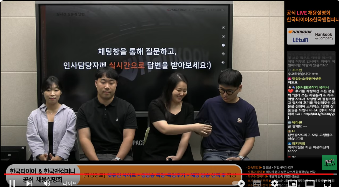 Q&A를 기본 일정보다 훨씬 오래해주셔서 좋았습니다. 취준생이 궁금해할만한 요소들을 콕콕 집어 설명해주셔서 좋았습니다. 생방송 시청 인증 이미지