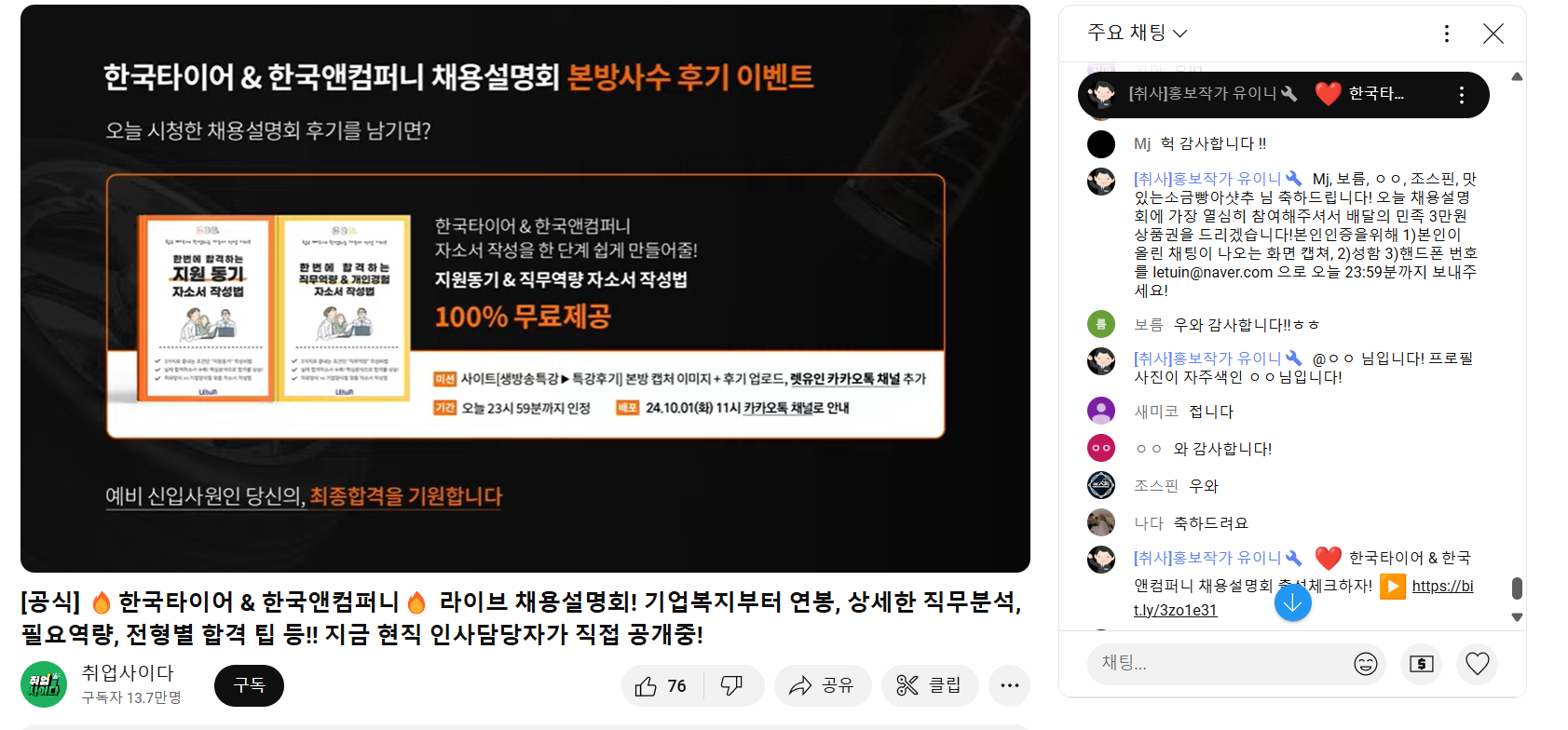 한국타이어&한국앤컴퍼니 Live채용설명회