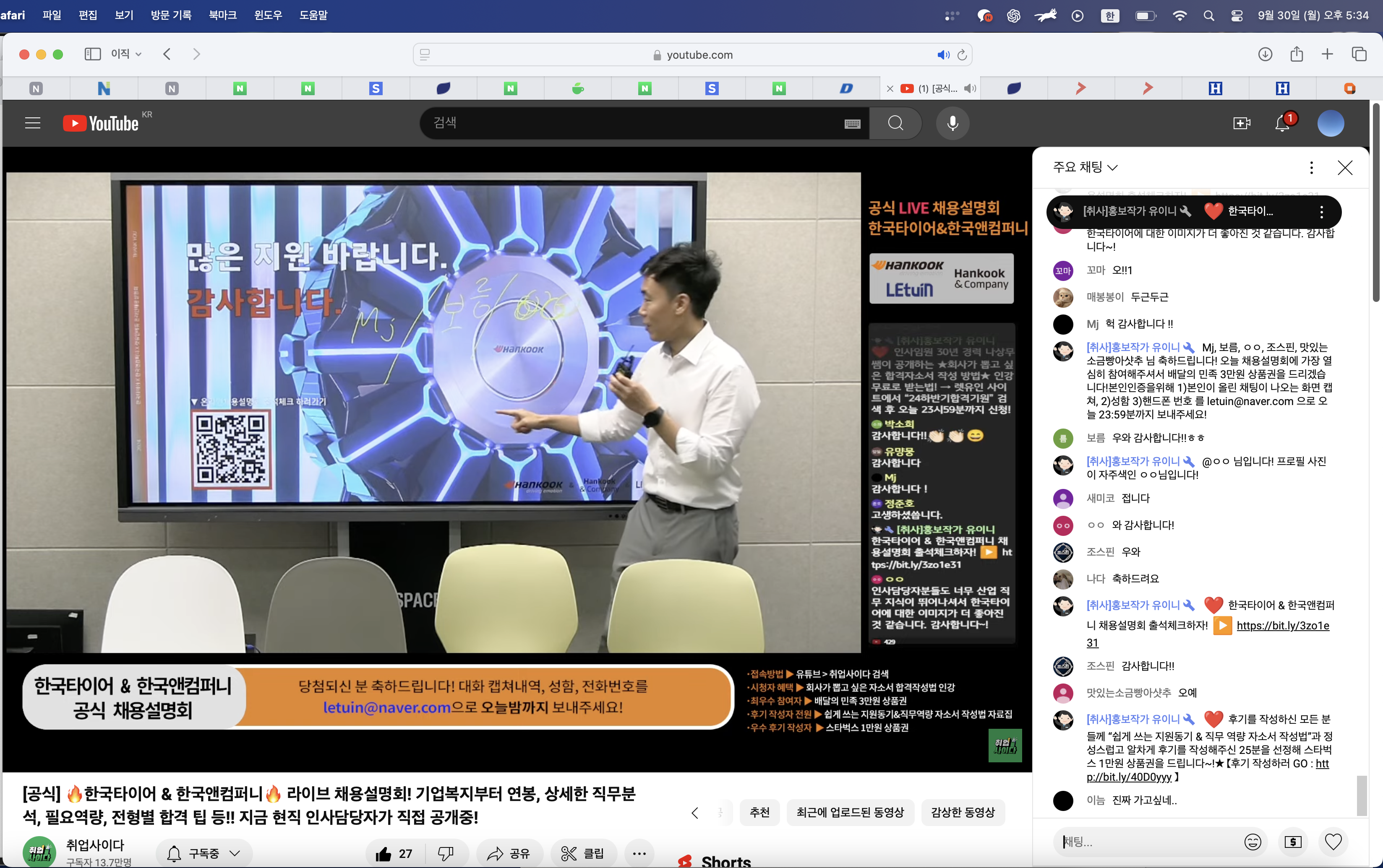 실제로 하는 일, 그리고 여기서 가져야 할 태도와 인사이트 등을 모두 총망라해서 타이어산업이 어떻게 돌아가는지까지 파악하고 코어까지 알아갈 수있었던 좋은 기회였습니다. 생방송 시청 인증 이미지