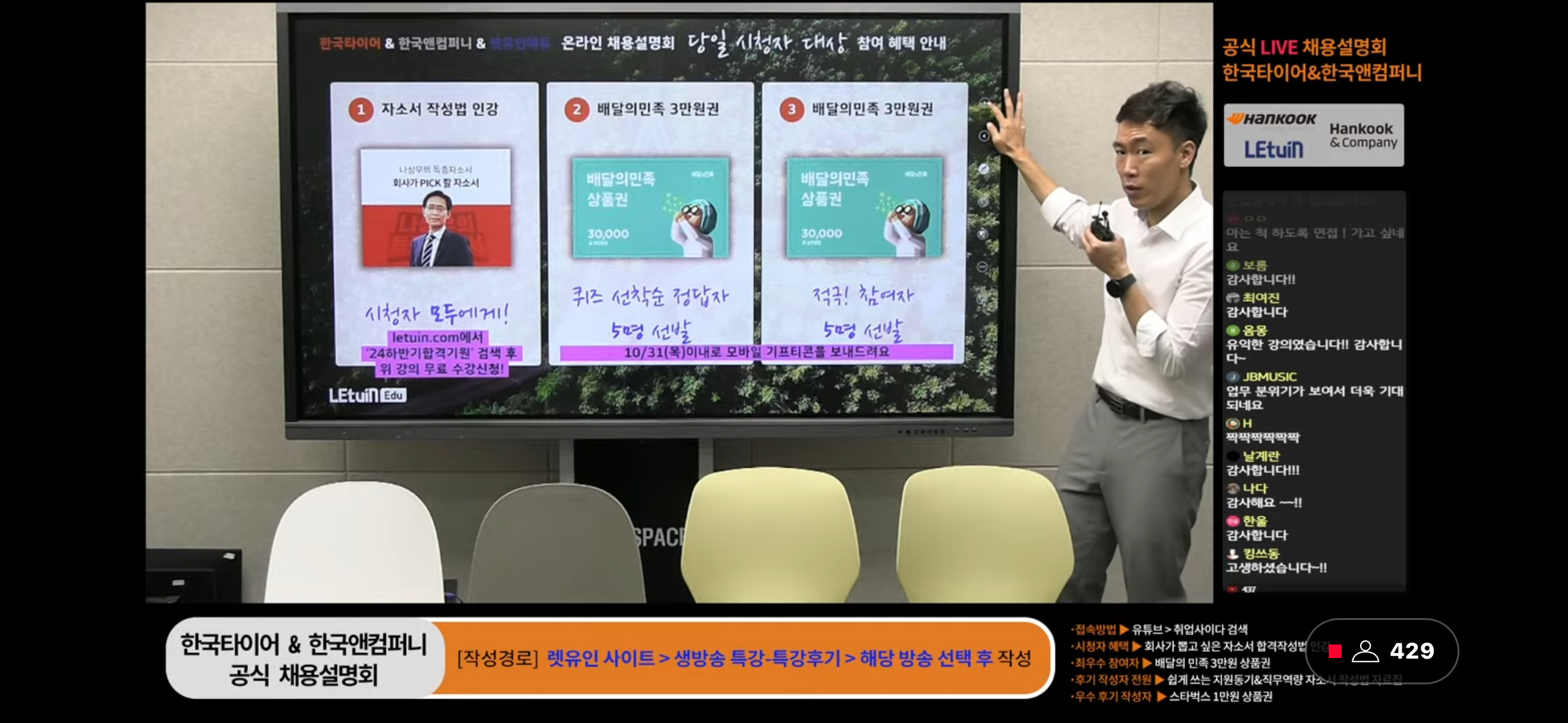 오늘 전체적으로 이공계 관련 직무에 대해서 자세하게 설명해주시고, 실제로 궁금했던 사항들 가감없이 말씀해주셔서 좋았습니다. 채용 설명회를 듣는 내내 정말 한국타이어에 입사하고 싶다는 생각이 들었습니다 ..!!