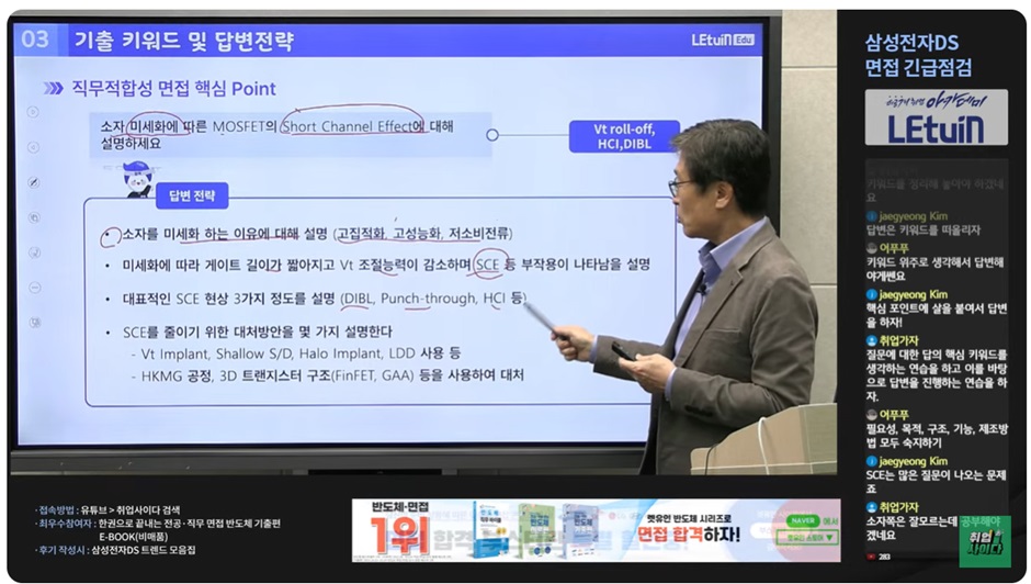 어떤 부분을 준비를 해야 할지 막막했었는데 여러 키워드를 사업부별로, 직무별로 정리해주셔서 방향성이 좀 잡힌 것 같습니다. 특히 후공정이 중요해지고 있는 점을 강조해주셨던 것 같아요. 감사합니다. 면접 꼭 붙겠습니다.