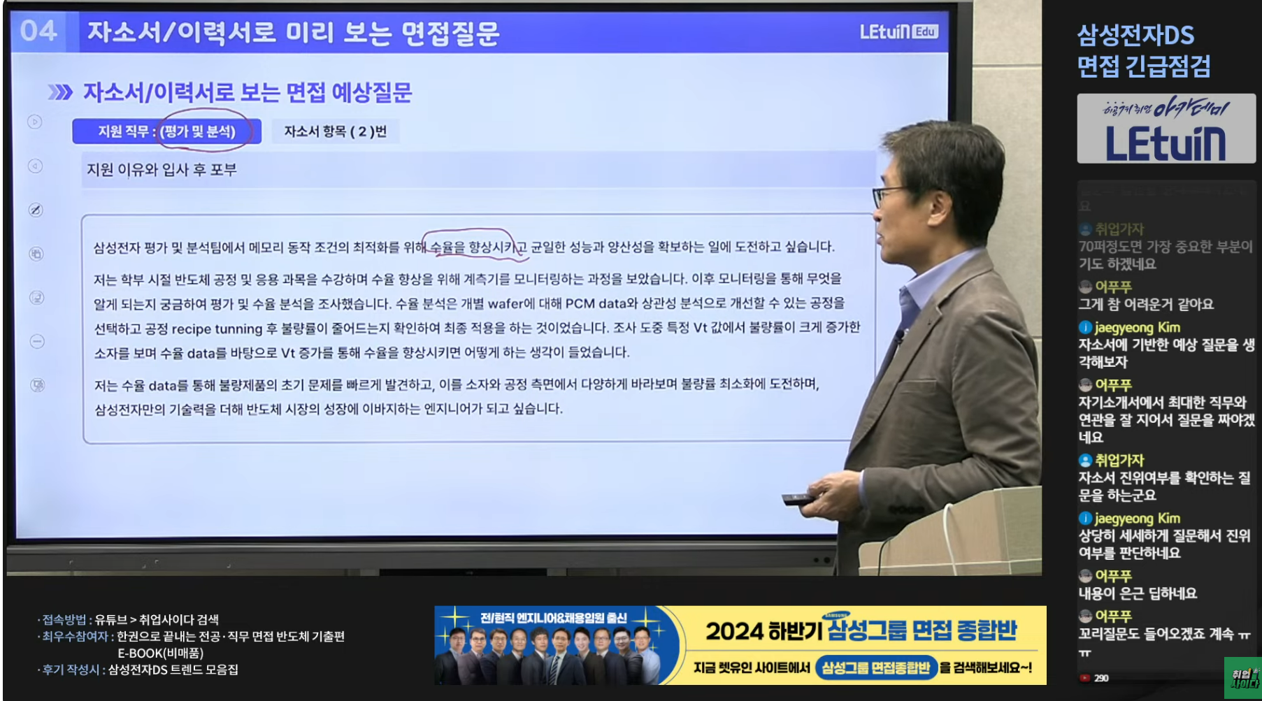 삼성전자ds 면접 라이브