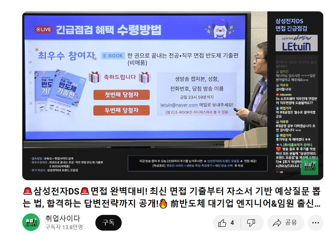 렛유인 생방송 취업특강