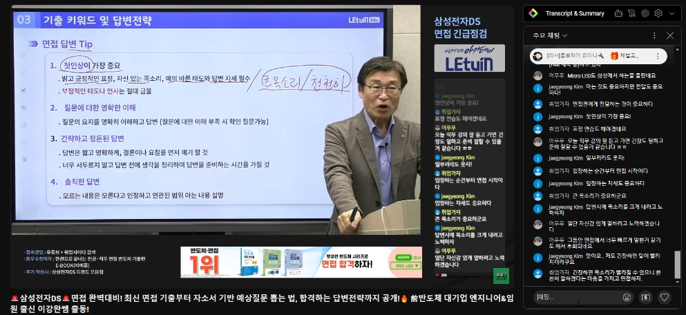 각 부서별 준비해야하는 키워드가 제시되어 많은 도움이 되었으며, 그러한 정보를 바탕으로 면접 대본 작성에 많은 도움이 되었습니다. 또한, 강사님과 소통하려 노력한 것을 알아주시고 최우수 참여자로 뽑아주셔서 기출 관련 비매품 책을 주셔서 감사합니다.