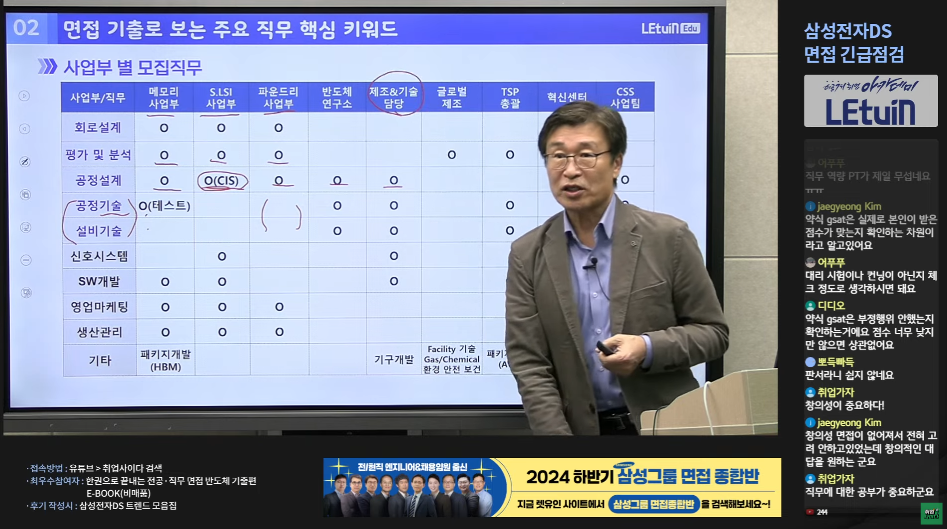 삼성 직무면접에서 나오는 질문, 산업 동향 등을 알려주셨습니다. 본인 자소서에 맞는 추가 예상질문 만드는 방법도 알려주셨습니다. 다른 강의도 추천해 주시고 모의면접 날짜도 알려주셔서 참여하면 좋을 것 같습니다.