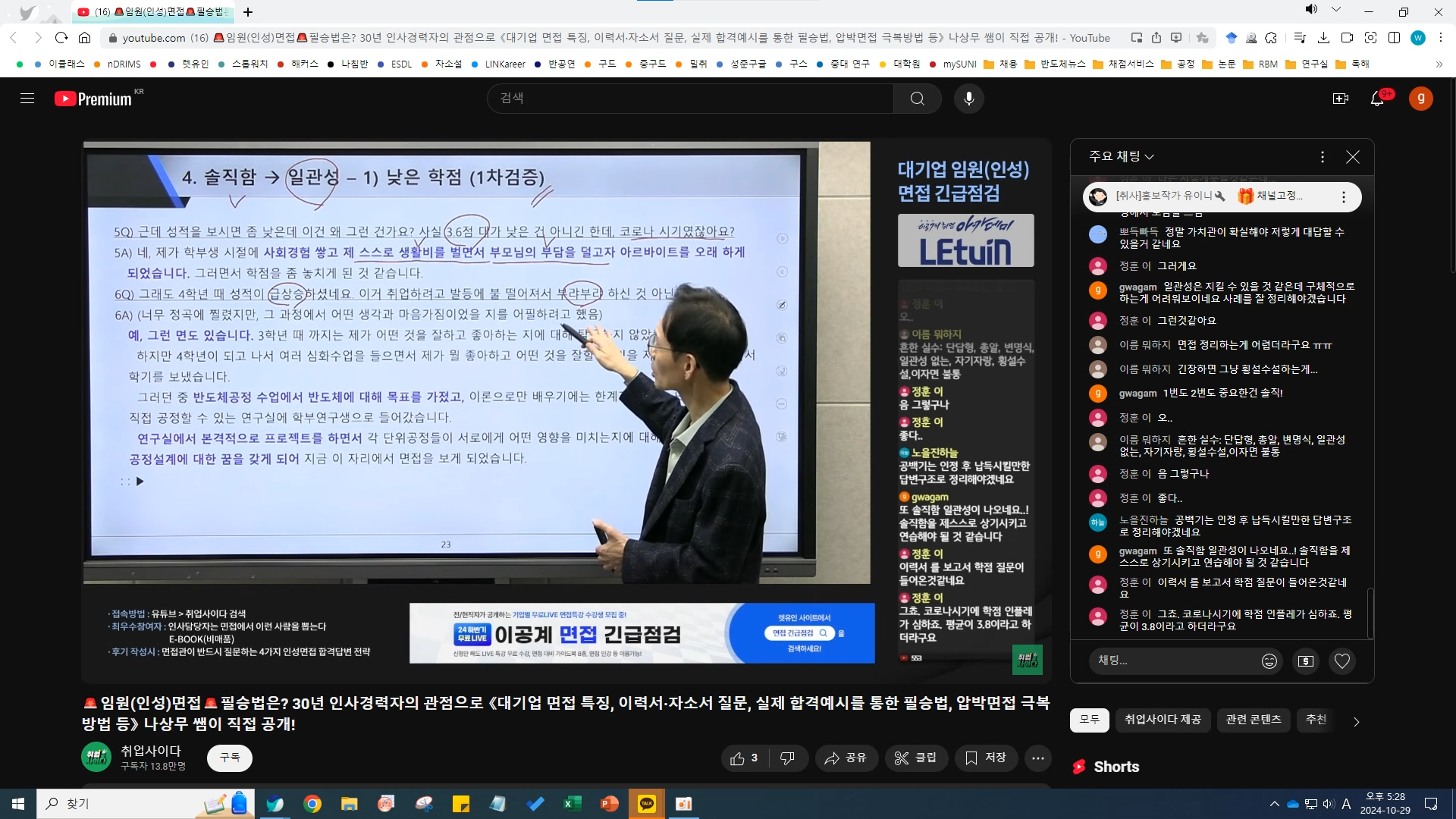 인성 면접이 까다롭다는 이야기를 선배들로부터 많이 들었습니다. 그렇기에 이번 특강을 통해 어떤식으로 이야기를 풀어내야할지 기본적인 가이드를 제시받은 것 같습니다. 생방송 시청 인증 이미지
