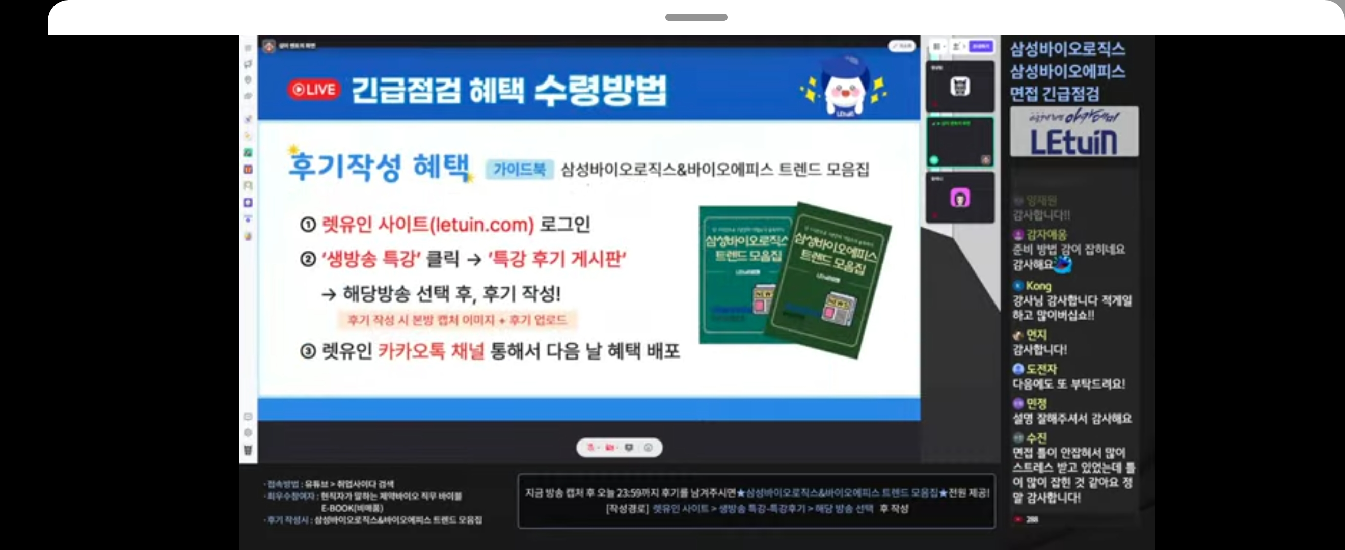 삼성 바이오 2024 상반기 2023 하반기 직무 면접 기출을 알려주셨습니다. 직무 면접을 어떻게 준비해야하는지 인성 면접에서 어떤 질문들이 나오는지 알려주셨습니다. Q&A도 답변 많이 해주셨습니다. 3. 수강후기
