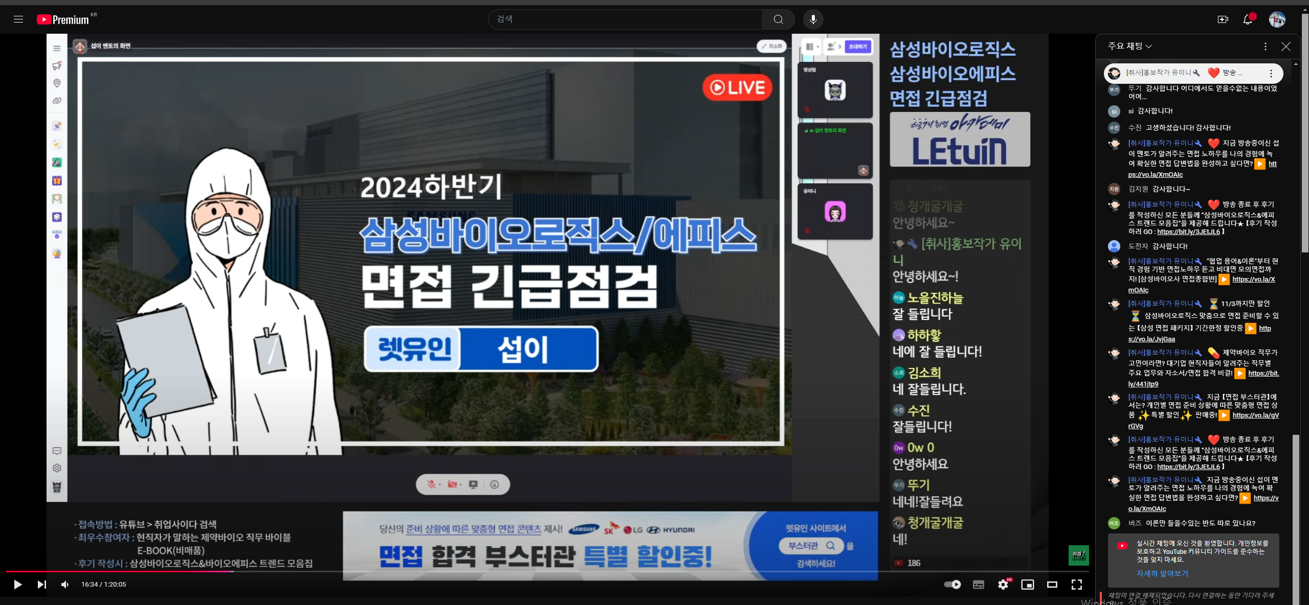 특히 영어 질문이 들어올 수 있고 어느 정도 전공 지식 또한 숙지하고 있어야 겠다는 생각이 들었습니다. 생방송 시청 인증 이미지