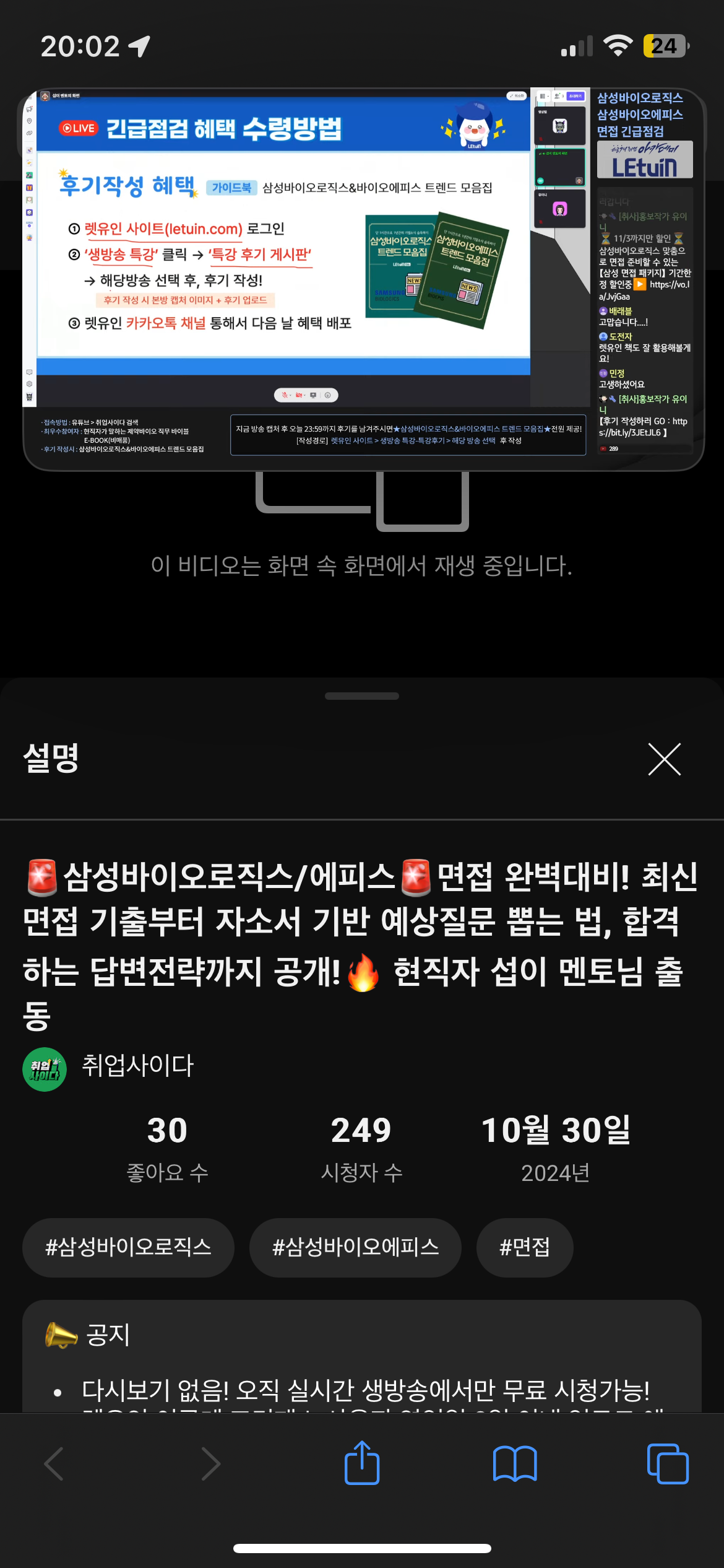 몇 개 알려주셔서 도움 되었어요 다음에 또 진행해주시면 좋을 것 같아요 !! 삼성 바이오 준비하는 사람들 중에 저만 듣고 싶었어요 ...ㅎㅎ 생방송 시청 인증 이미지