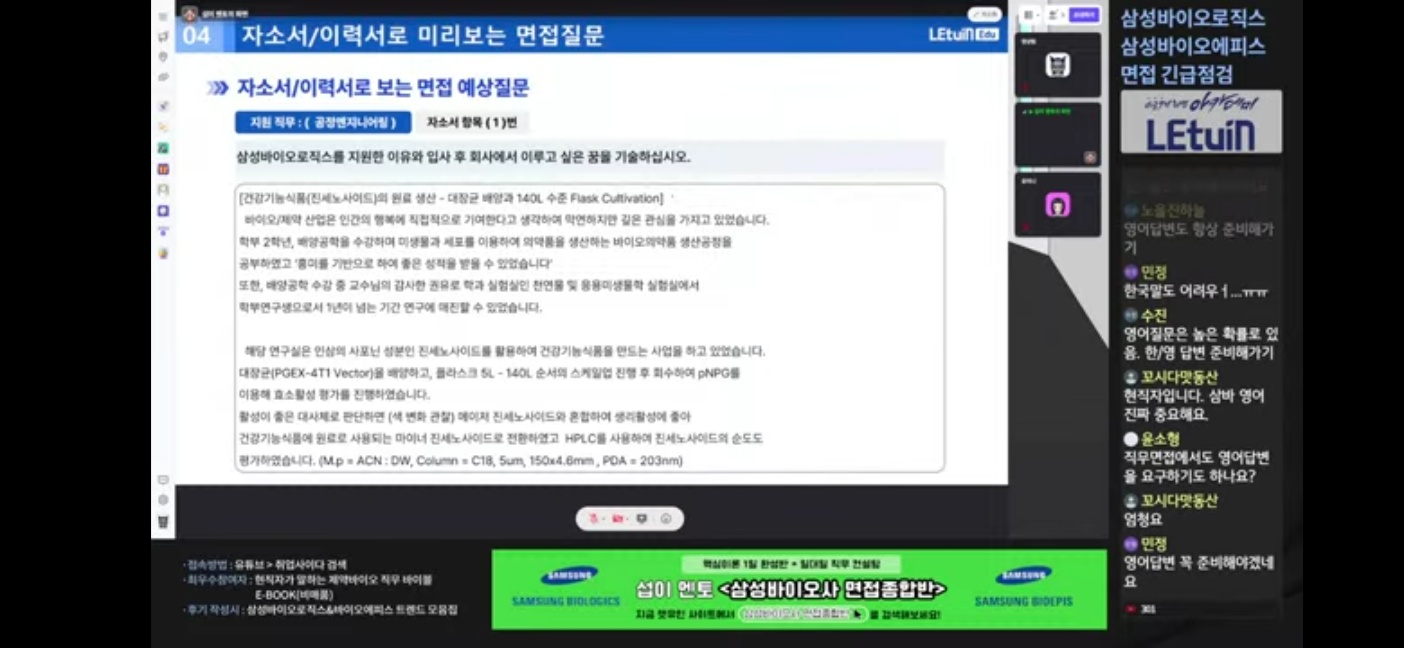삼성바이오로직스 에피스 긴급 면접 관련 특강
