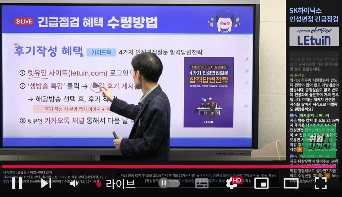 하이닉스 임원면접 대비로 라이브를 들을 좋은 기회가 있어서 수강했습니다.