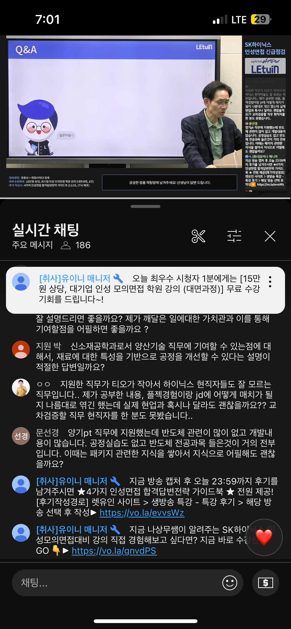2024하반기 sk하이닉스 문화적합성 면접 긴급점검이 진행된다는 것을 보고 바로 접속했습니다. 곧 하이닉스 면접을 준비하고 있던 터라 도움이 될까싶어서 빠르게 참여했는데 역시 나상무 선생님의 특강은 매우 유익했습니다. 이 특강을 바탕으로 면접 열심히 준비해서 꼭 취업에 성공하도록 노력하겠습니다!