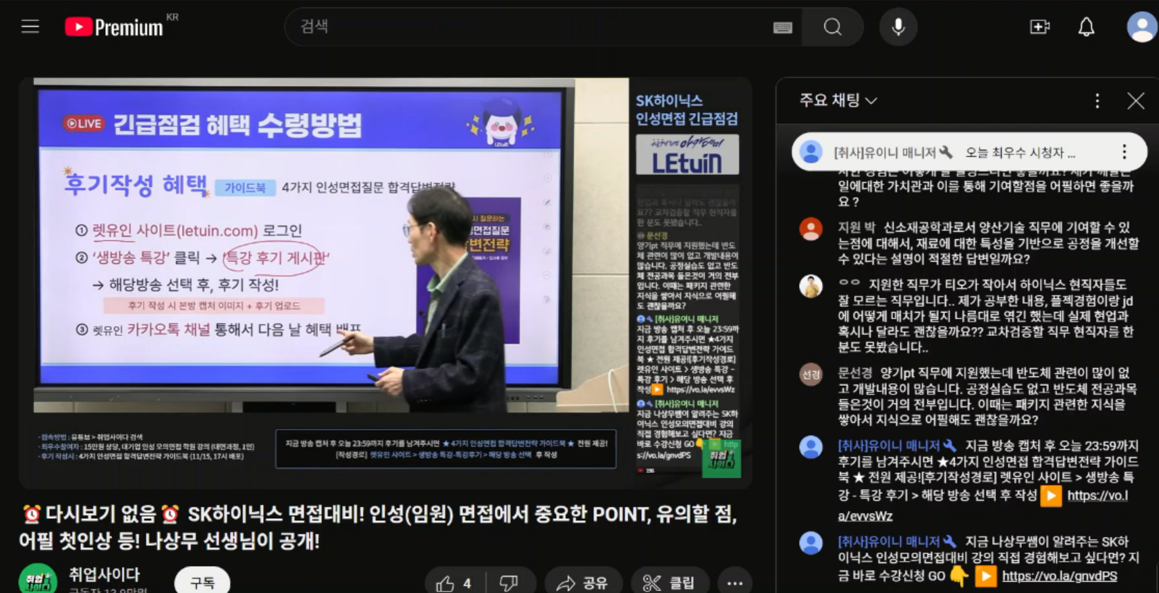 하이닉스의 경우 스트레스 및 취미, 이천/청주, 교대근무 등에 대한 질문이 나온다. 함께 일하고 싶은 사람이 되어야 한다. 3. 수강후기