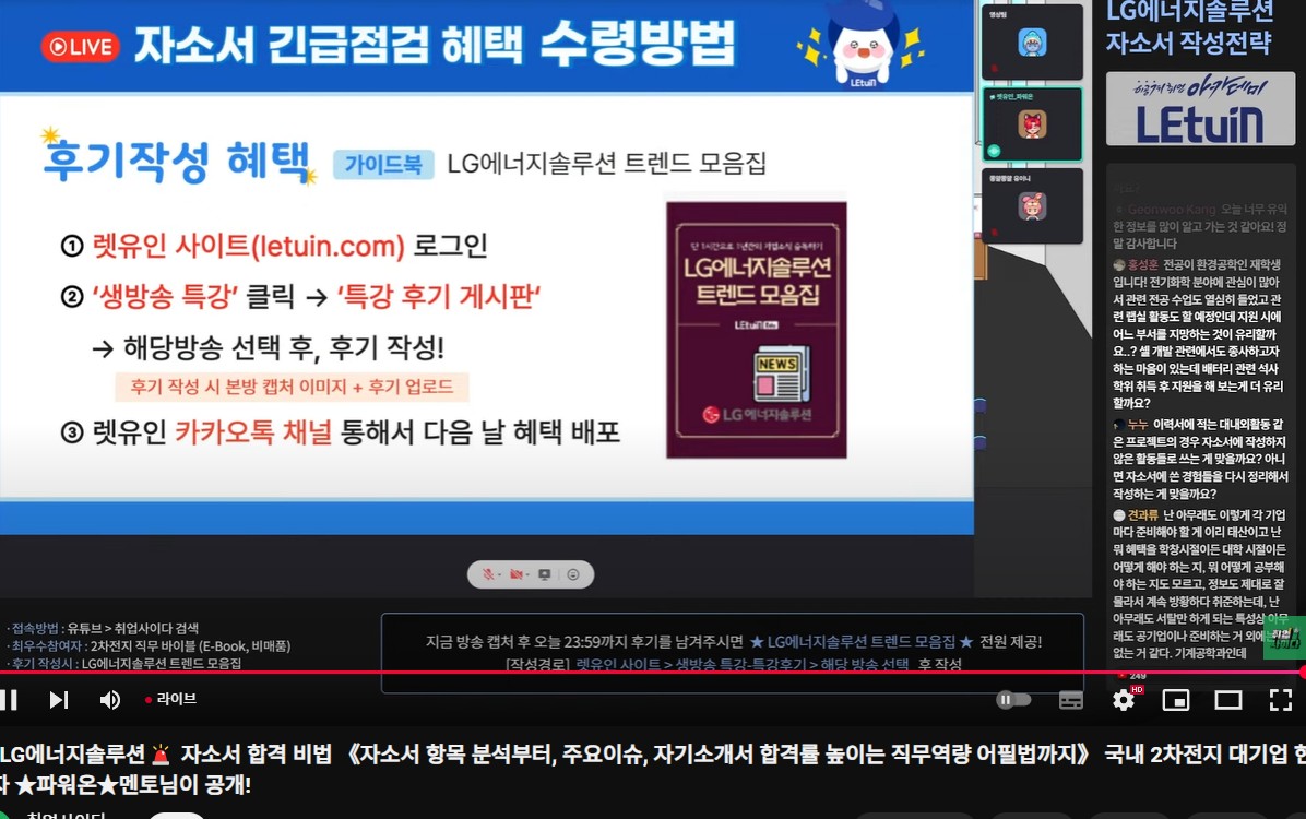 LG 에너지솔루션의 자소서 항목 별 어떤 점을 강조해야 하는 지 위주로 설명이 진행되었다.