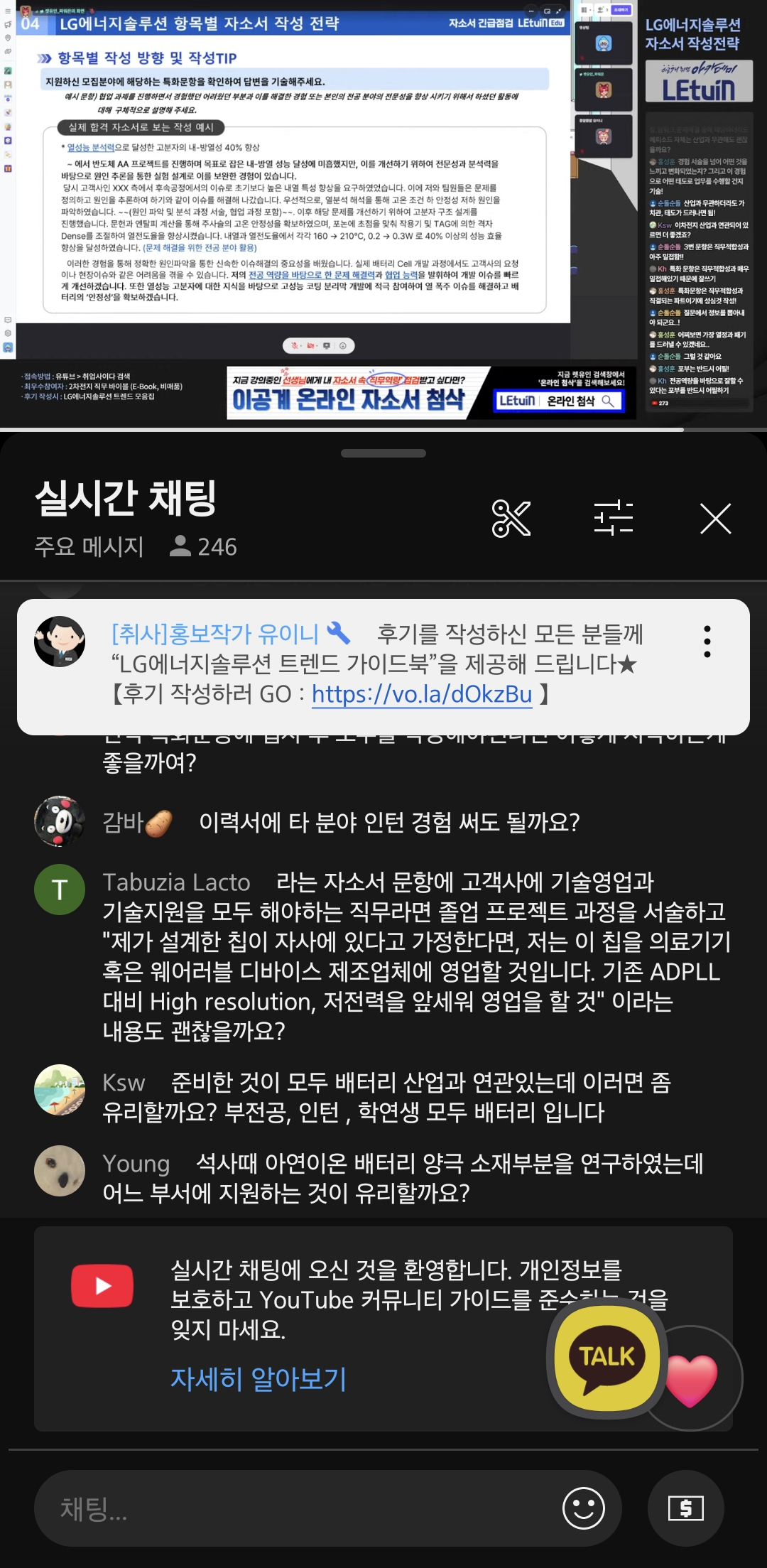 LG 에너지솔루섬 자소서 긴급점검 생방송 시청 후기