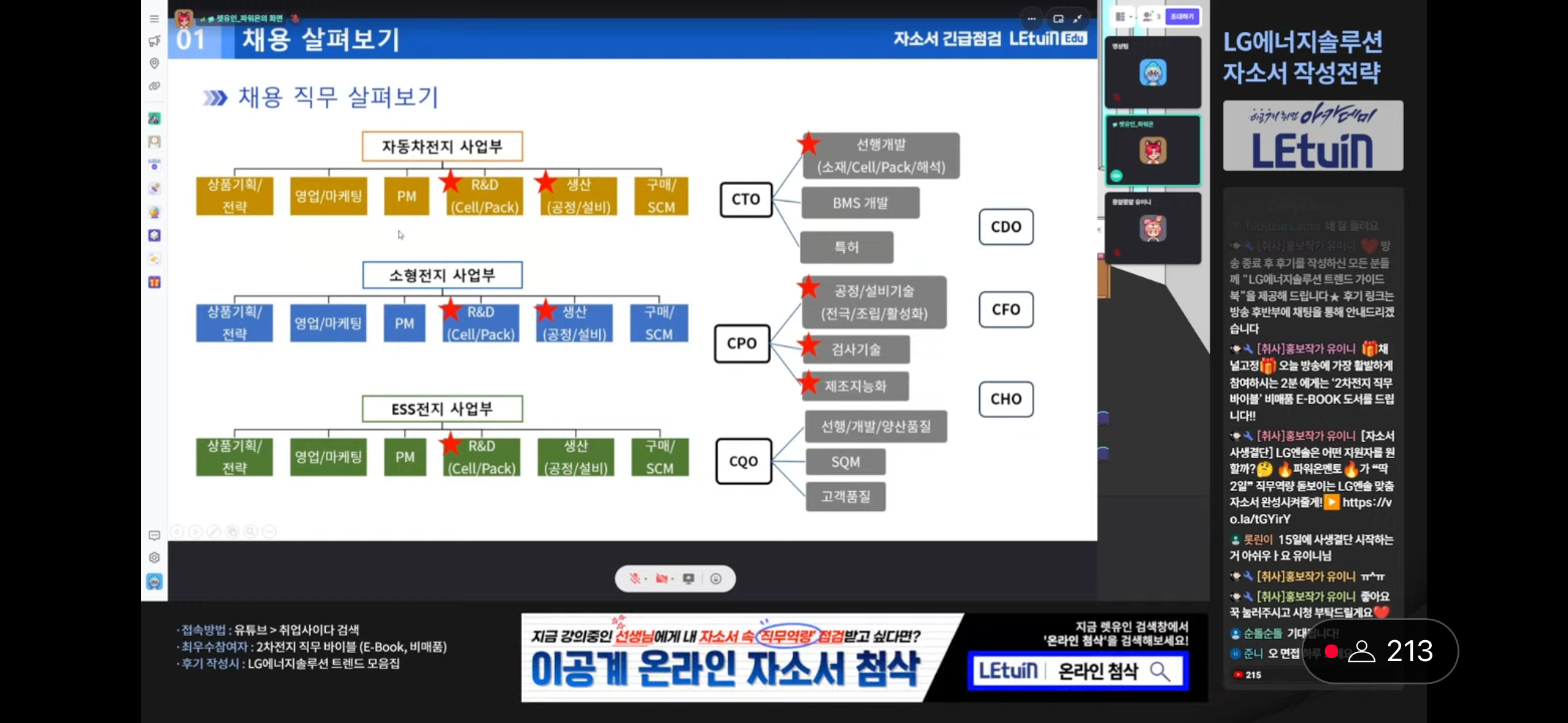 LG 에너지솔루션 각 사업부 별 세부 직무, 현업에서 사용되는 용어 등 유익한 정보들을 많이 얻을 수 있었습니다.