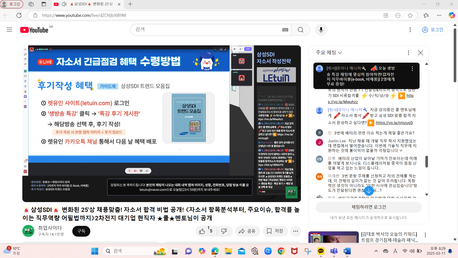 또한 극판, 화성공정 등등 배터리 제조 공정에 대한 설명까지 해주셔서 어느 부분을 타겟팅하여 작성해야되는지 알 수 있었습니다. 감사합니다. 생방송 시청 인증 이미지