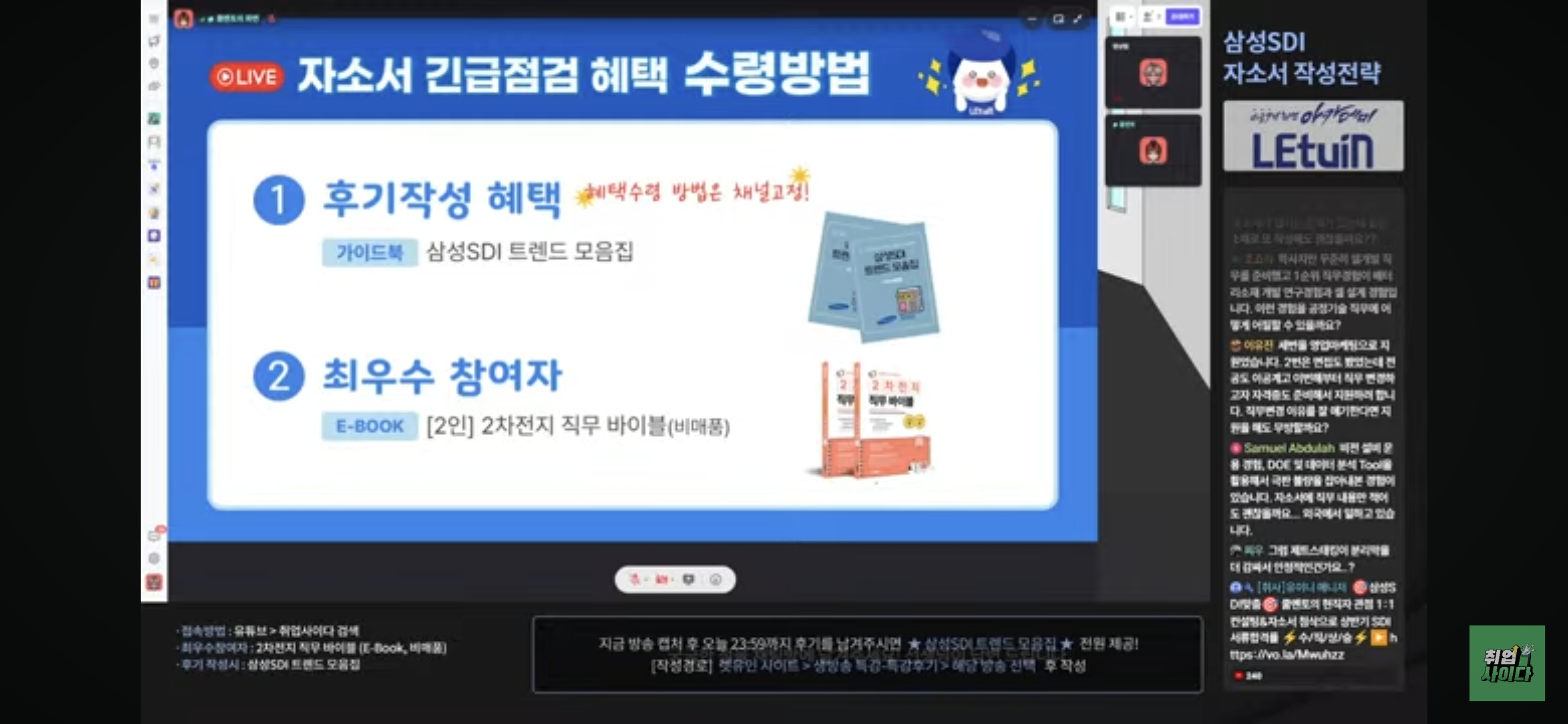 자기소개서 쓰고 어떻게 더 보완하면 좋을지 피드백하기 좋았습니다 생방송 시청 인증 이미지