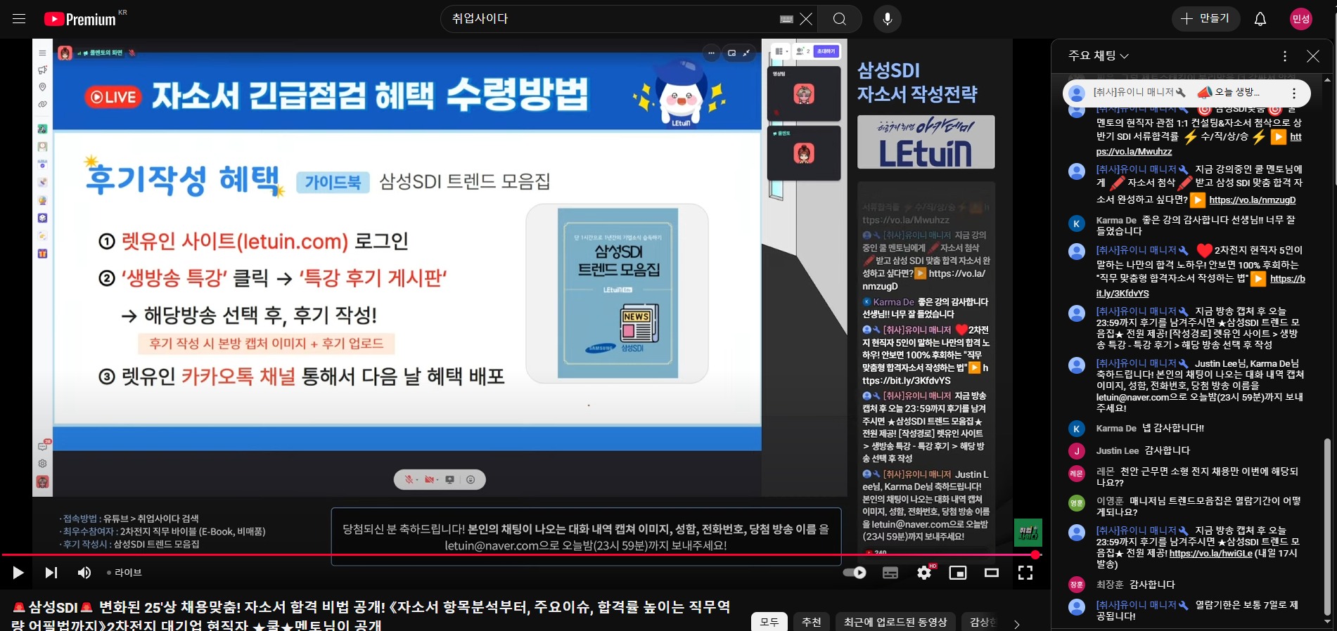 sdi 채용맞춤 자소서 방송 후기