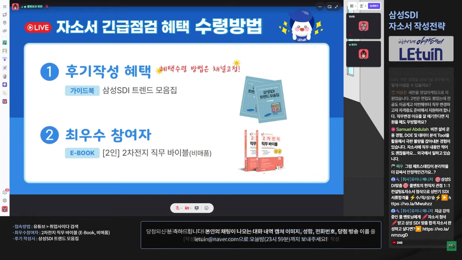 현재 삼성SDI에서의 직무 관련 정보를 알수있었고 각종 삼성SDI관련 기사들과 인터배터리를 통해 삼성SDI가 어떤 방향성을 가지고 있는지 알수있었습니다. 또한, 자소서 및 여러 취업 관련 정보에 대해서 알 수 있는 유익한 강의였습니다.