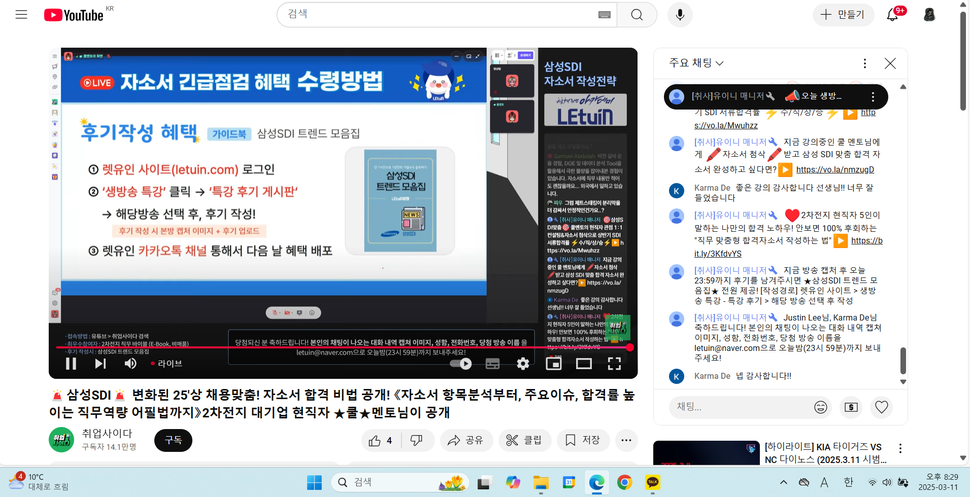 삼성SDI만의 아이덴티티가 있는 기술들을 알 수 있었고 자소서 예시를 들어주시면서 문항에 적합하게 자소서를 작성하는 법을 알려주셨음. JD에서 배터리 제조 공정과 관련된 내용을 체크해주신것을 바탕으로 자소서를 작성할 예정임.