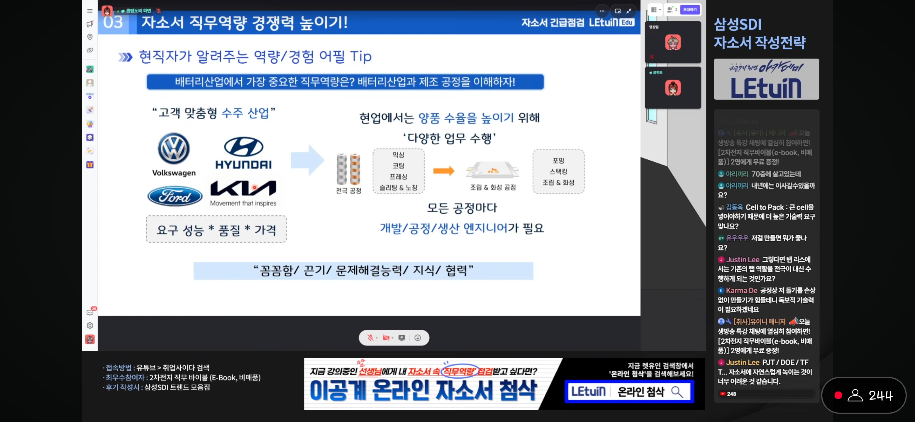 자기소개서 작성법, 이차전지 제조 공정의 이해!! 1시간동안 알찬 강의였습니다.