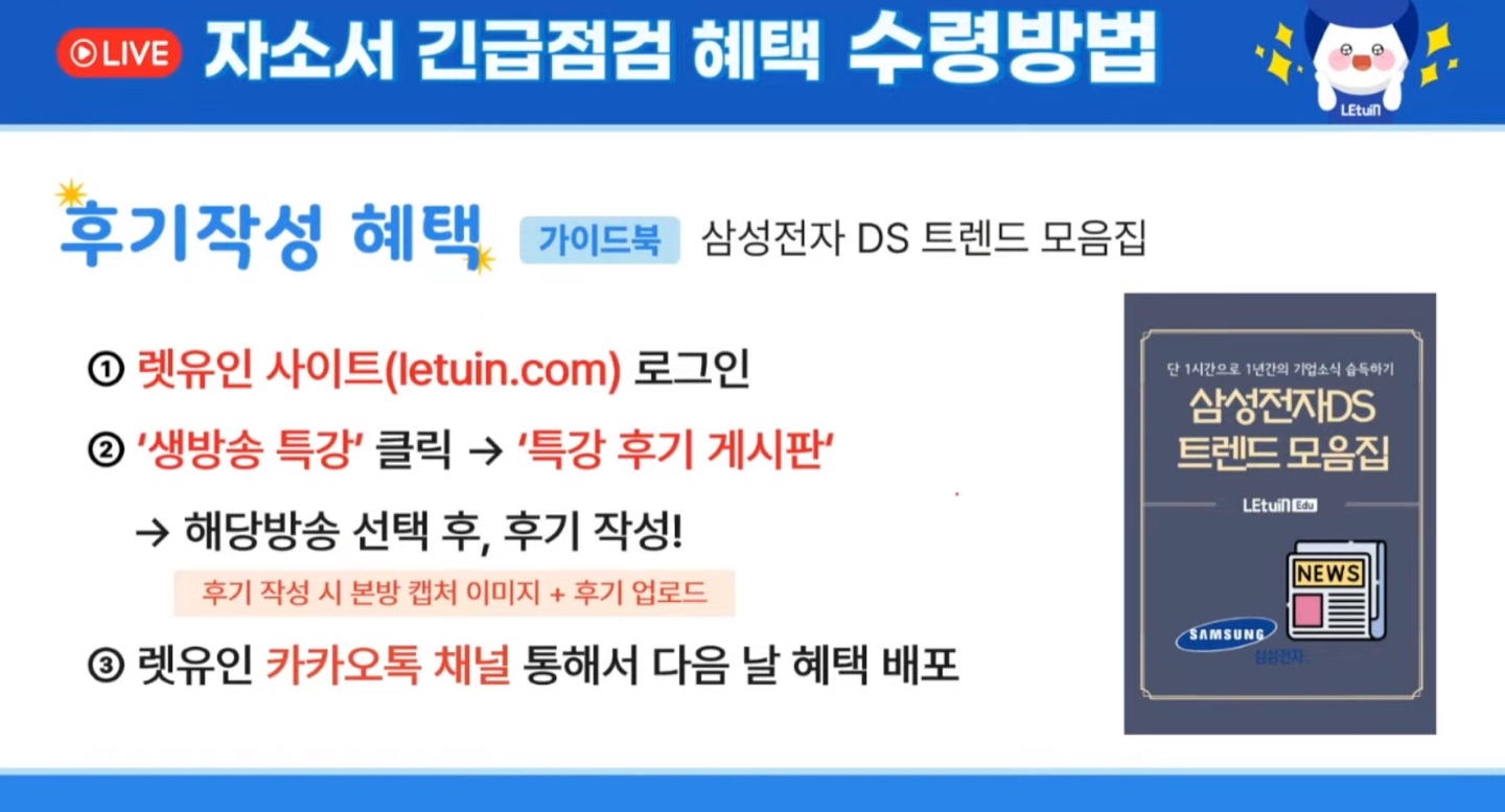 상반기 채용에 대한 전반적인 내용, 삼전 이슈, 자소서 작성전략에 대해 알 수 있었습니다.