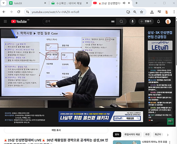 삼성과 하이닉스의 인성면섭, 직무면접에 대해 전반적인 소개와 어떻게 준비해야 할지, 어떤 부분은 조심해야 할지, case를 보면서 설명해주셨습니다. 특히 삼성과 sk하닉 면접을 비교해주셨습니다