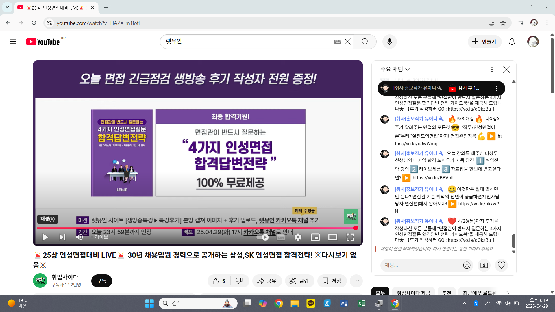 알려주신 포인트들을 떠올리며 답변 방향을 정하고 면접 합격하겠습니다. 감사합니다. 생방송 시청 인증 이미지
