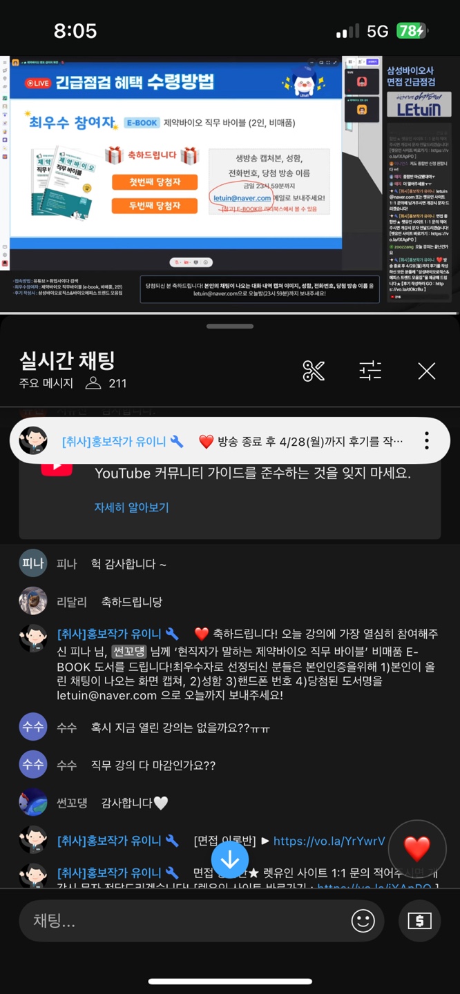 생방송 시청 인증 이미지