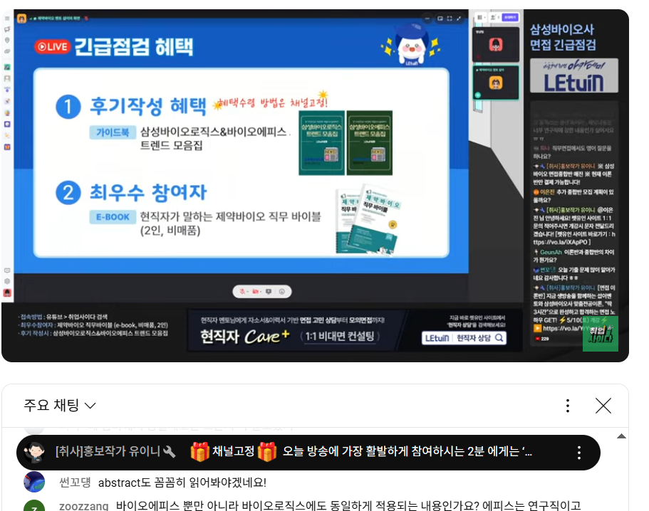 삼성바이오로직스의 직무 면접과 인성 면접에 대해 상세히 말씀해주셨습니다. 특히 직무 pt면접을 어떤 식으로 공부해야하는지 생물 공정 공학(또는 바이오화학제품제조기사), 삼성 홈페이지, 분자생물학, 생화학 책을 보면 된다는 해답이 명쾌했습니다.