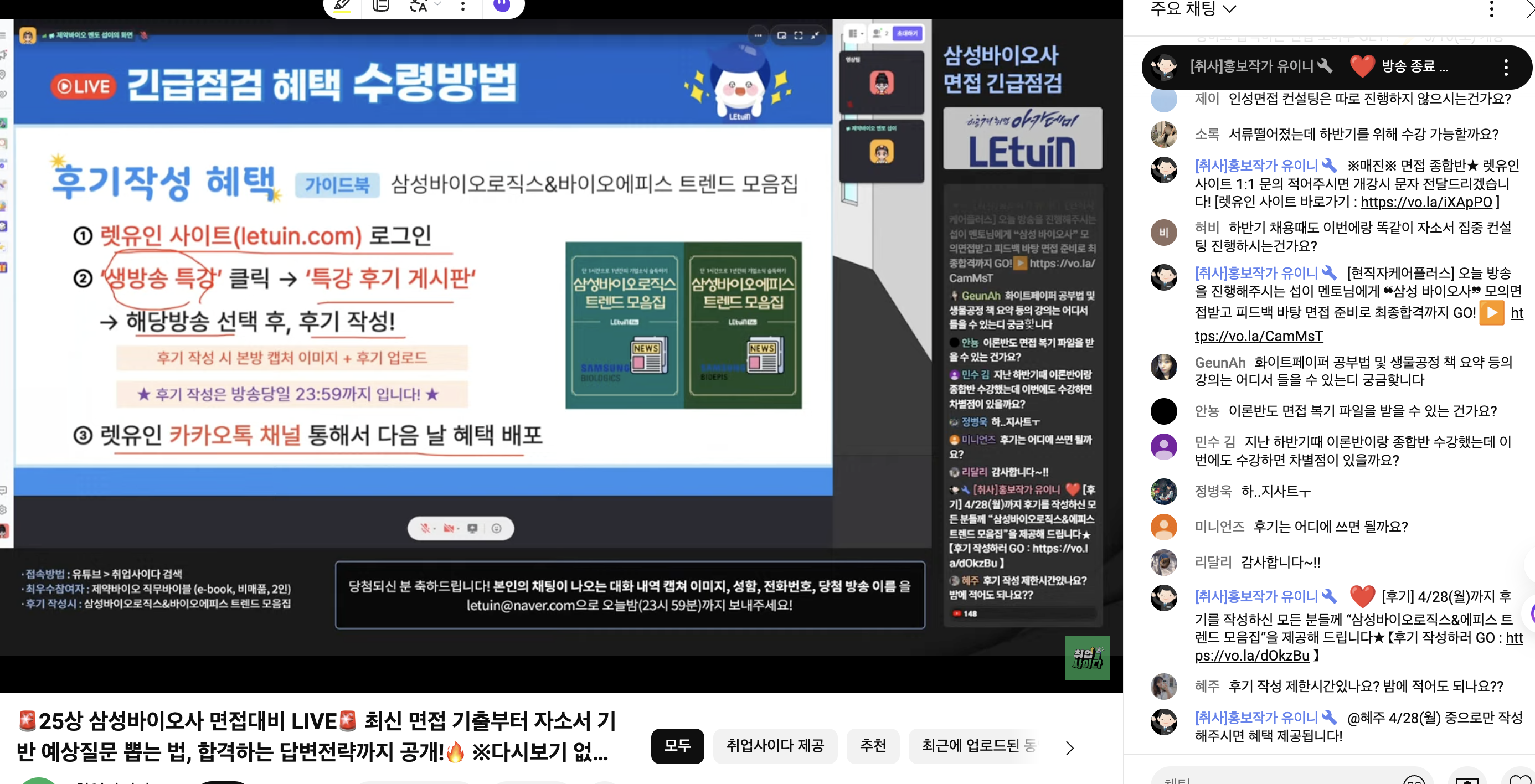 말씀해주신 질문 리스트들이 너무 유익했고, 도움이 많이 되었습니다. 종합반 추가 모집 시, 꼭 꼭!!!! 듣고 싶습니다 ㅠㅠ !! 생방송 시청 인증 이미지