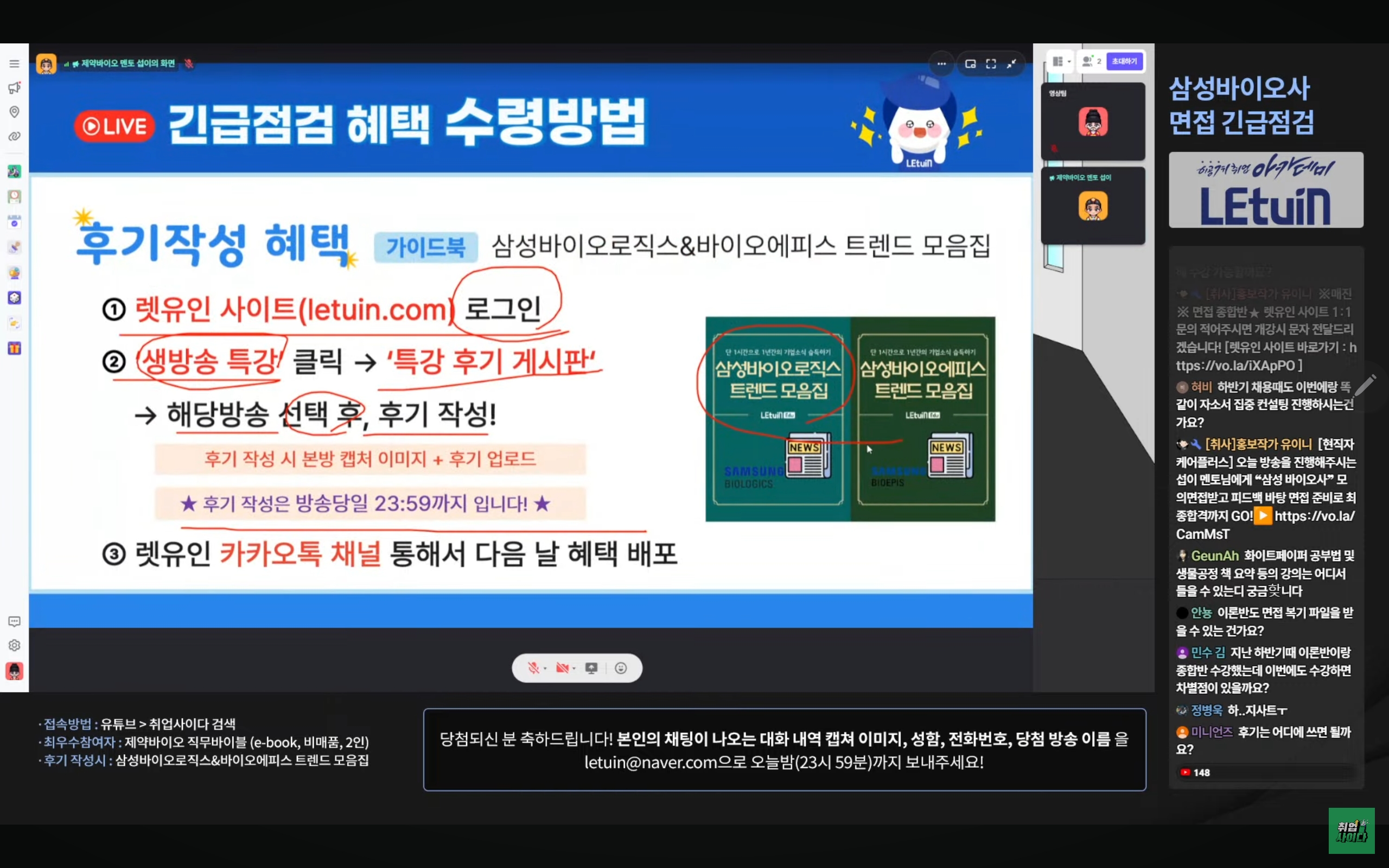 삼성바이오로직스 면접을 앞두고, 어떻게 준비해야 될지나 전공 별로 무슨 내용을 많이 물어보는지 알려주셔서 너무 좋았습니다!!! 회사에 대해서 알려주셔서 좋았었어요 큐앤에이도 많이 받아줘서 좋았습니다