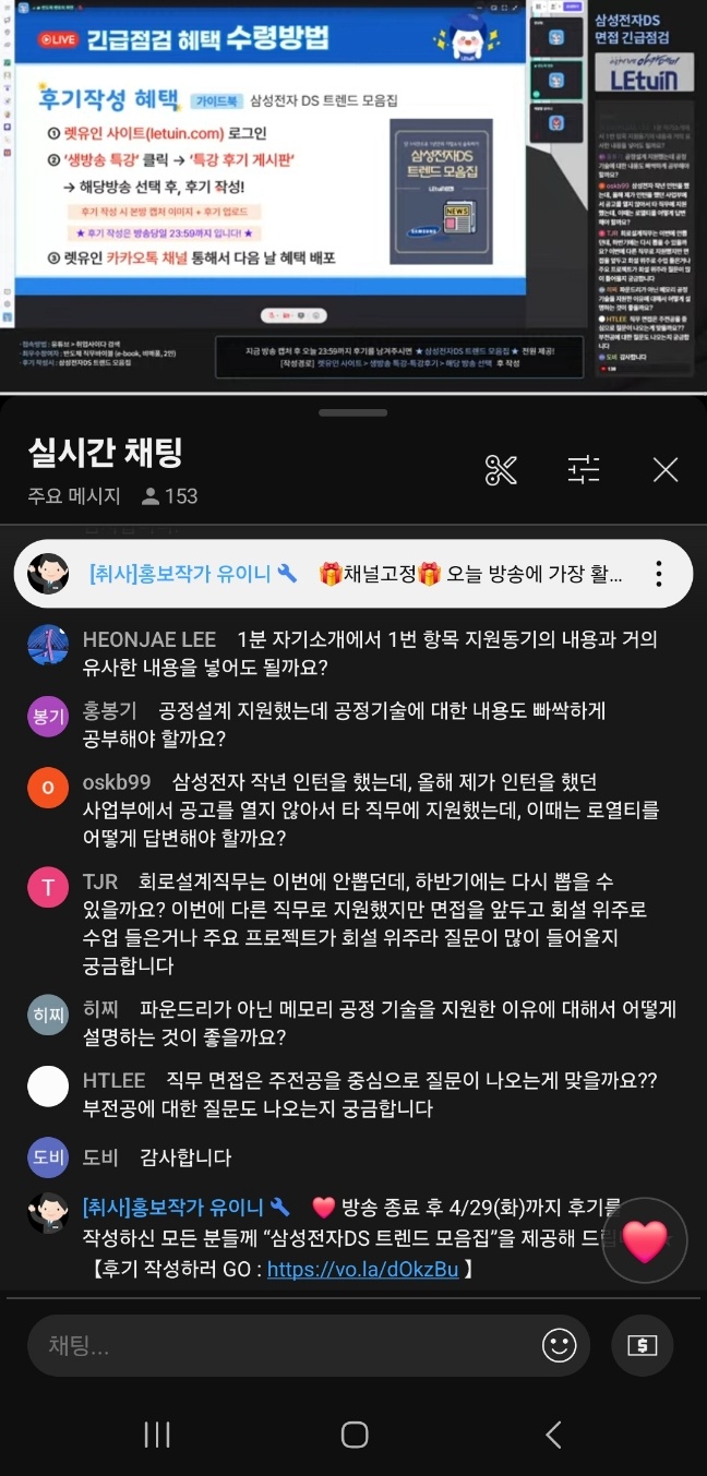 이력서 및 자소서의 문항들을 통해 면접 예상 질문이 각각 어떤 식으로 나올지 알아보았고, 어떤 식으로 답변을 준비해야 하고 어떻게 면접을 준비해야 할지 감을 잡은 것 같아서 좋았습니다.