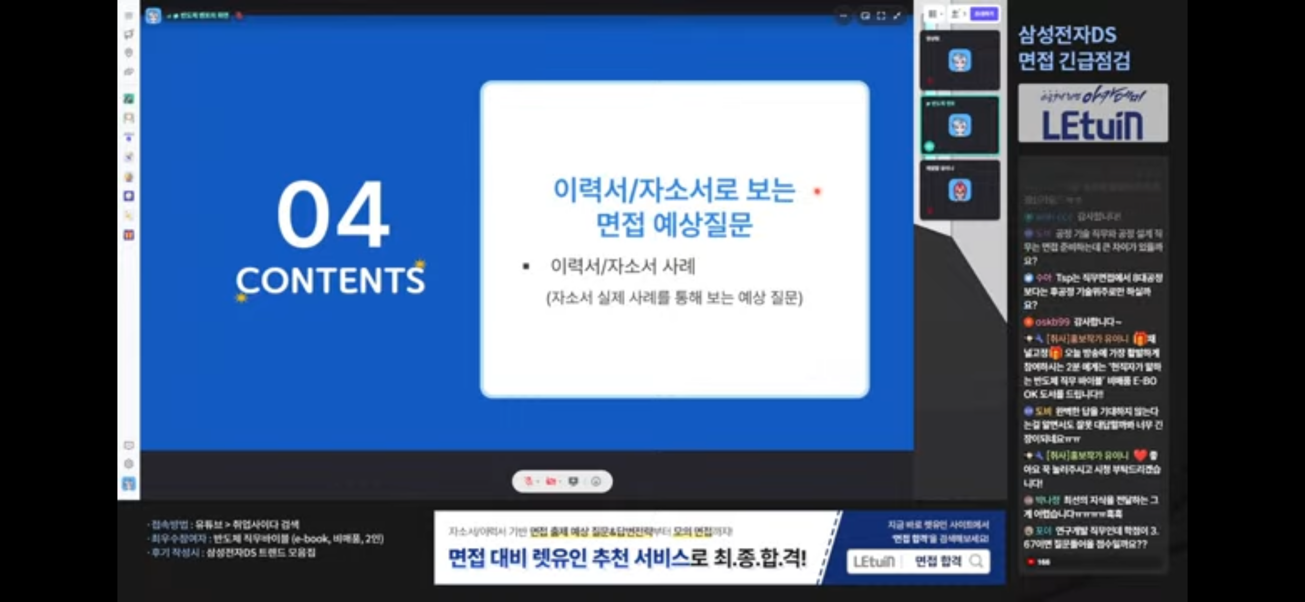 면접 시 완벽한 답변을 구사하는 것 보다는 알고 있는 지식을 잘 대답하는 것이 중요하며 현재 반도체 트렌드를 알고 내가 다른사람에게 설명할 수 있을 정도로 숙지하고 있어야 한다는 점을 알게되었습니다. 생방송 시청 인증 이미지
