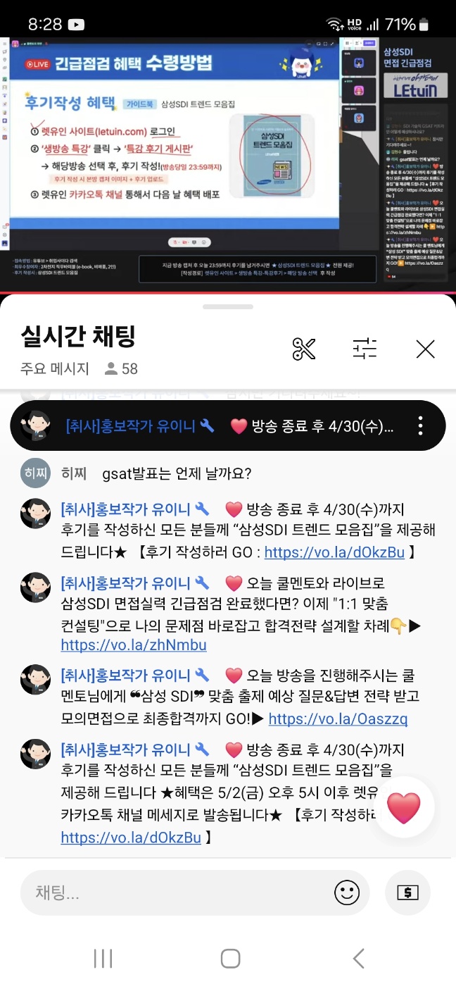 렛유인덕분에 한층 수월하게 면접을 준비할 수 있을 것 같습니다 정말 감사하고 반드시 합격하도록 하겠습니다 생방송 시청 인증 이미지