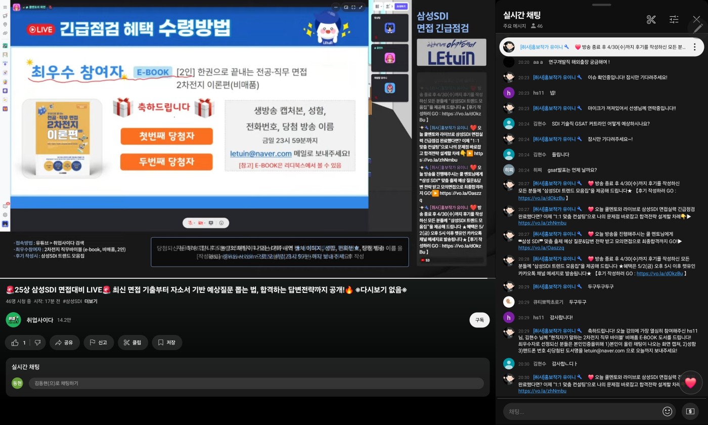 오늘 강사님께서 해주신 말씀 새겨듣고 간절함을 갖고 면접 준비에 임해서 최종입사하겠습니다!! 취준생분들 모두 파이팅입니다 생방송 시청 인증 이미지