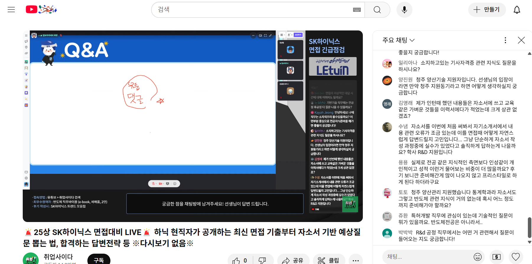 하이닉스의 면접 구성 및 특징부터 각 직무별 직무적합성 면접 빈출 질문 알려주셔서 공부방향 및 범위 설정해주셔서 좋았습니다. 더군다나 이력서 기반으로 어떤 예상질문이 나올지 실제 이력서와 자기소개서 내용을 보여주시면서 예상질문을 보여주셔서 이해하기 좋았습니다.
